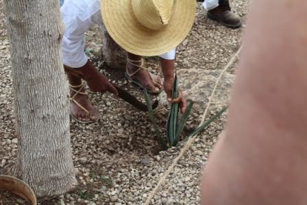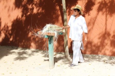 Buiten werd de verwerking van de agavebladen tot sisal gedemonstreerd