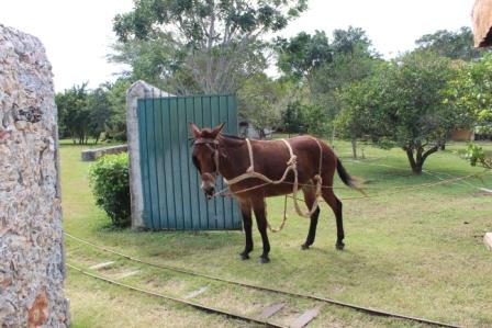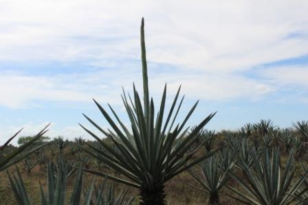 | De muilezel staat al op ons te wachten | die ons over het smalspoor door de agavevelden trekt | De agaven op de plantage |