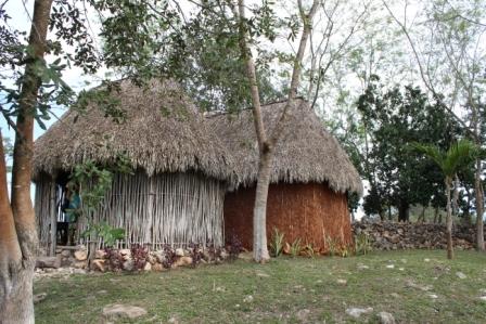 | Eén van de typische Maya huisjes met dak van palmenbladeren | Deze