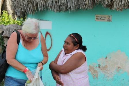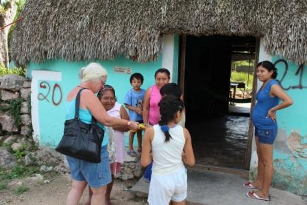 die uit, waarbij ook de rest van het gezin te voorschijn kwam. Later kwam een van de kinderen achter ons aan en riep: "Donna, Donna", toen we omkeken riep hij: "Gracias Donna" |
