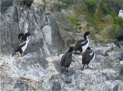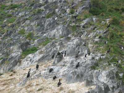 Een derde vogelsoort was de "Shag", verwant aan onze Aalscholver. We zagen twee soorten, de "Stewart Inland Shag" en de "Spottend Shag"