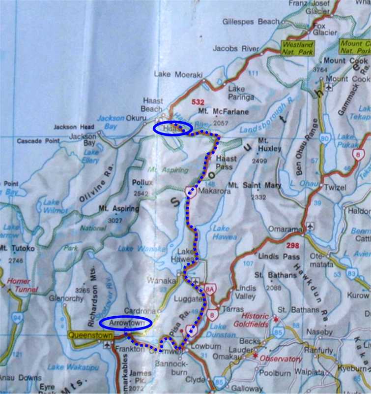 2009 - 14e vakantiedag en 9e dag Nieuw Zeeland - Arrowtown > Township Haast Vandaag was weer een prachtige dag. Het begon wat bewolkt maar de zon liet zich steeds vaker zien en aan het eind van de middag konden we heerlijk zonder jas in de zon zitten. We hebben vanmorgen eerst Arrowtown bekeken, een kleine nederzetting die de tijd van de goudzoekers nog uitstraalt. Ook natuurlijk het plaatselijk museum, die kleine musea zijn vaak veel interessanter dan de grote. Toen op weg naar de westkust via een prachtige bergweg waar we veel tussenstops en fotostops hebben gemaakt. Ontzettend mooie natuur; bossen, meren, rivieren, besneeuwde bergtoppen, waarvan we een heleboel foto's hebben gemaakt waarvan hieronder enkele van de mooiste. we zijn in de township Haast gestopt, waar we nog net niet de zee zien, dat komt morgen |