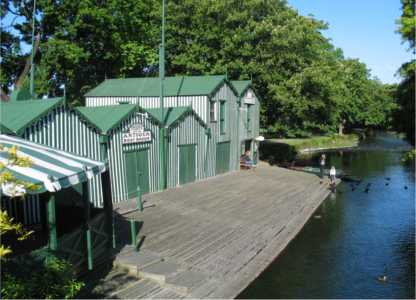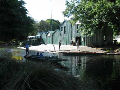 Tenslotte langs de River Avon naar de botenhuizen waarvandaan in platte rondvaartbootjes worden gepunterd