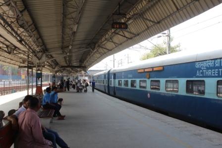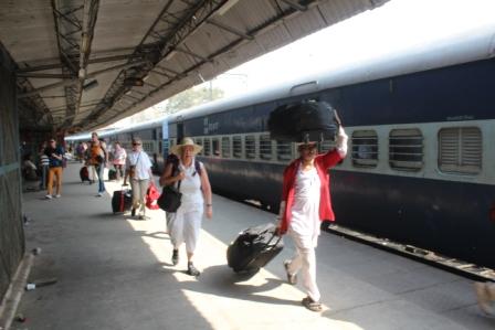 dagtrein, in een tweede klas slaapwagon, naar Jaipur. Onze