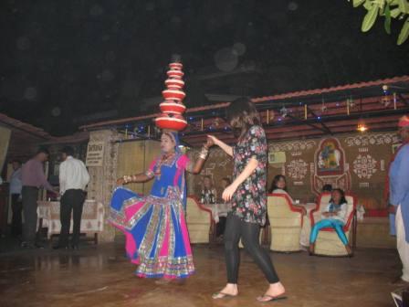 begeleiding van een Indiase muziek en vermaakt door Indiase dansen