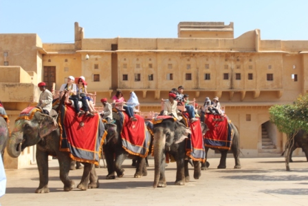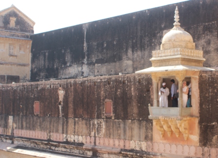 Amber-fort. We reden samen met een Jeep naar boven en liepen