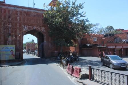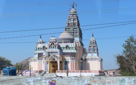 | we verlaten de stad Jaipur via één van de stadspoorten | onderweg veel Hindoe tempels met de karakteristieke torens | en steenbakkerijen |