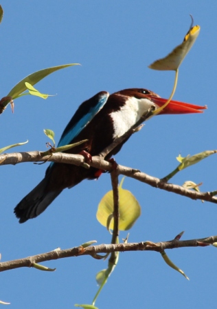 | Witborstijsvogel in de hoteltuin | Palmtortel | Langstaartsnijdervogel | Oevermaina's | Witborstijsvogel |