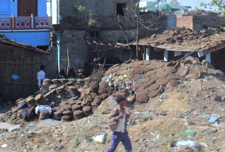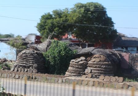| De mest van de karbouwen wordt vermengd met stro, gebruikt als brandstof. De ronde plakken worden op de daken gedroogd en daarna keurig opgestapeld in allerlei kunstzinnige vormen, vaak ook ingepakt in lemen huisjes die dan weer kunstig worden versierd met allerlei patronen | ||