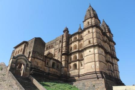 als zetel van het gelijknamige vorstenland. Over de rivier gaat een stenen brug. Als je daar over loopt heb je prachtig zicht op aan de ene kant Orchha met het fort en aan de andere kant de Koninklijke Chatri, mausolea van de maharadja´s uit de 18e en 19e eeuw. In het Orchha Fort staat de Jahangir