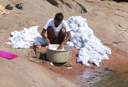 | de Chhatri aande Betwa rivier | de hotelwas? morgen slapen we misschien wel tussen deze lakens |