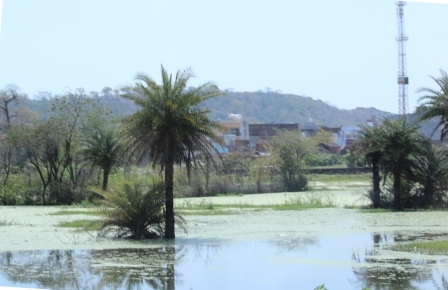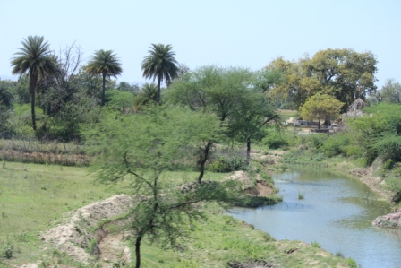 | palmen in het water maar nog geen natte moeson | door de overheid zijn door het hele land waterpompen geïnstalleerd |