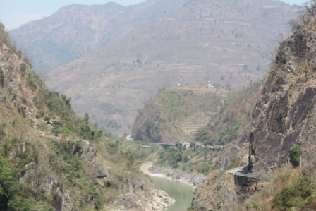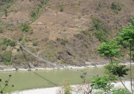 | een bergdorpje tussen de smalle terrassen | en nog wat hangbruggen van Duits fabrikaat | |