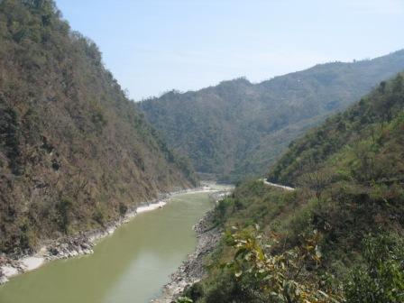 | we maakten een stop om de benen te strekken bij één van de vele hangbruggen, gebouwd door de Duitsers en hadden een prachtig uitzicht over de rivier | ||