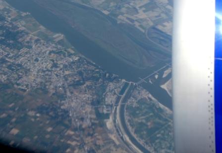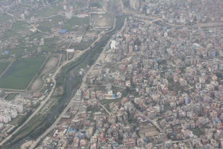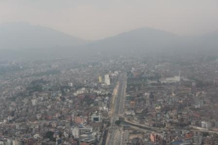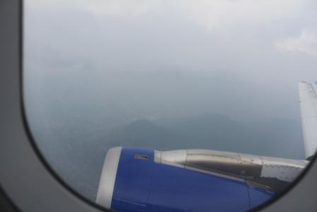 | bij het opstijgen hadden we nog laatste blik op Kathmandu | we zagen het Himalaya voorgebergte maar verdwenen al snel in de wolken | |