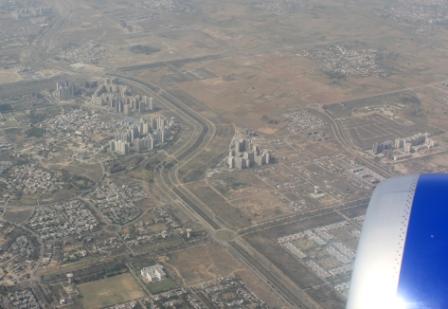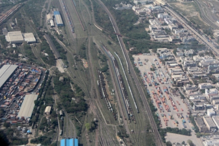 | rangeerterrein en treinstation Delhi | buitenwijk van Delhi | startbaan in zicht |