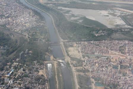 | we volgen de Yamuna rivier | landingsstrip onderweg | Verbreding van de Yamunarivier bij Okhla Bird Sanctury |