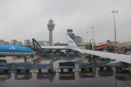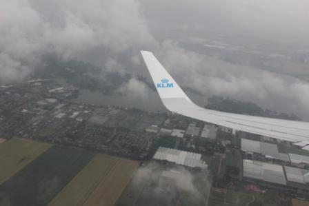 | in de regen aan de gate | de bagage gaat aan boord | en we vliegen de wolken in |