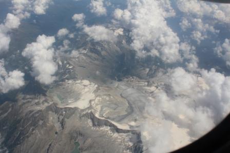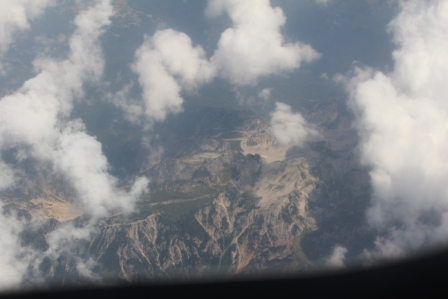 | pas boven de Alpen breekt de lucht | even later boven de Dolomieten | vlak voor Venetië lijkt het wat moerassig |
