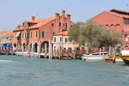 | traditionele blauw-witte meerpalen in Murano | de vuurtoren van Murano | een scheepswerf bij Certosâ op het hoofdeiland Venetie |