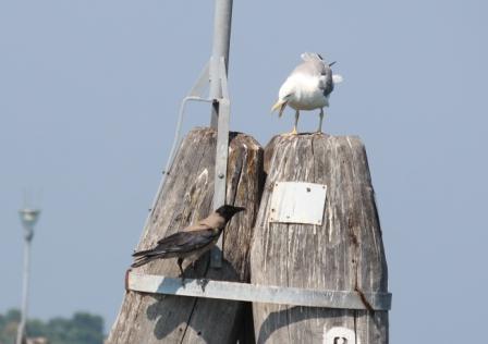 | we naderen het oude centrum met z'n vele kerktorens | onderweg wordt een bonte kraai toegesproken door een mantelmeeuw | |
