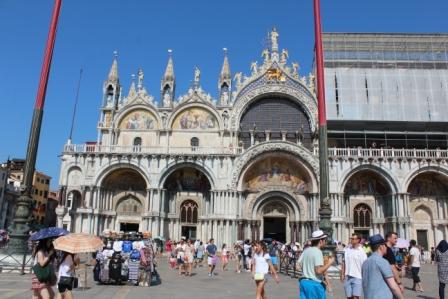 Met onze bagage liepen we het San Marcoplein over, langs de