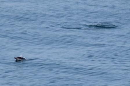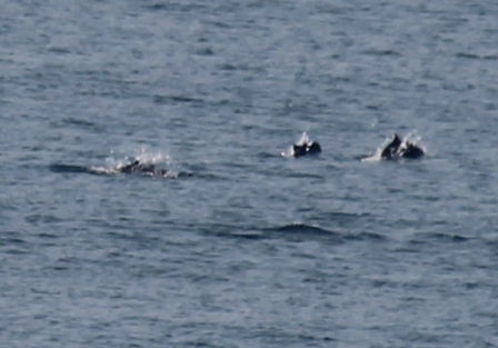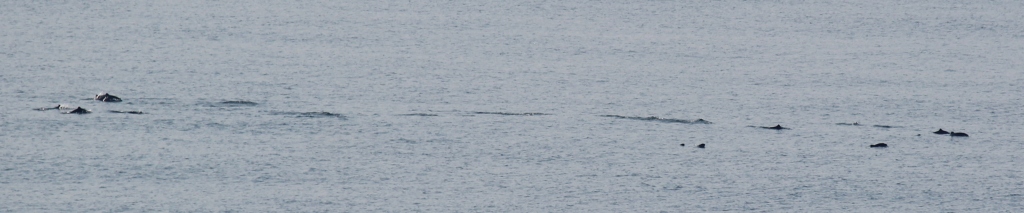 een half uur later passeerde een grotere groep dolfijnen. Wel erg ver maar toch leuk om te zien |
