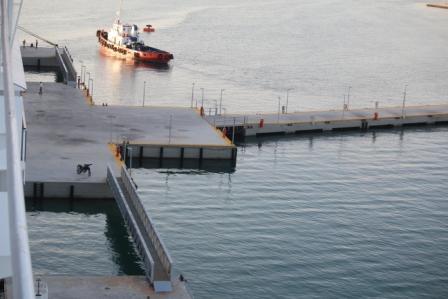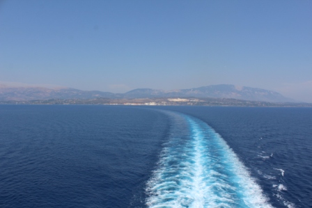 | rond het middaguur gingen we terug naar ons schip | om 2 uur lieten we de steiger leeg achter | en voeren de baai van Kefalonia uit, de Ionische zee op |