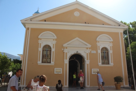 | In Santorini bezochten we een, volgens de kosteres "oud" kerkje dat na de aardbeving van 1952, dus nu 63 jaar geleden was gebouwd | ||