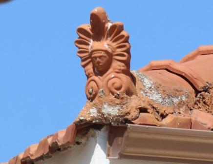 | boerenzwaluw (L) en oeverzwaluw (R) op één lijn | de hoeken van de daken waren met deze kopjes versierd | aan de haven dit beeld van een visser uitkijkend over zee |