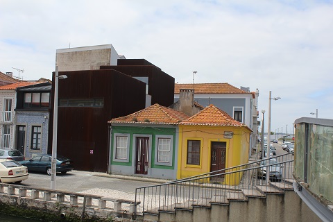 De visserswijk van Aveiro met hier en daar nog een klein gerestaureerd vissershuisje |