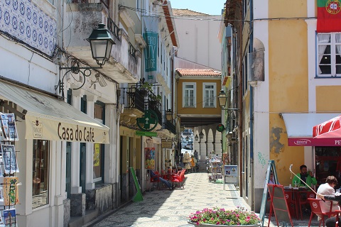 Aveiro is gelegen aan de Atlantische Oceaan en aan de lagunes van