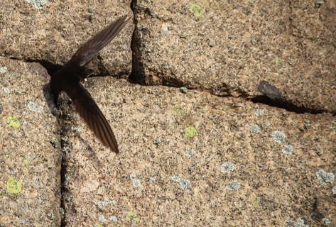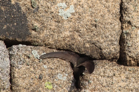 in de muren van het kasteel nestelen Vale gierzwaluwen | en op de borstwering een Blauwe rotslijster |