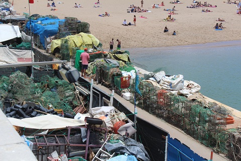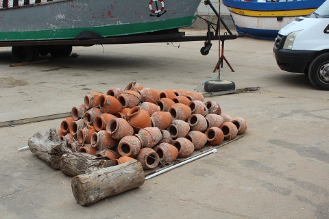 | de kade voor de plaatselijke vissers | een Ericeiriaans vissersbootje | potjes voor de vangst van inktvissen |