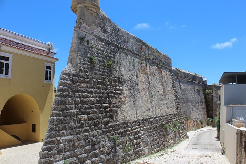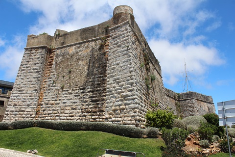 de verdedigingsmuren van het Cidadela Cascais Fort na de aardbeving in 1755 en de daarop volgende tsunami |