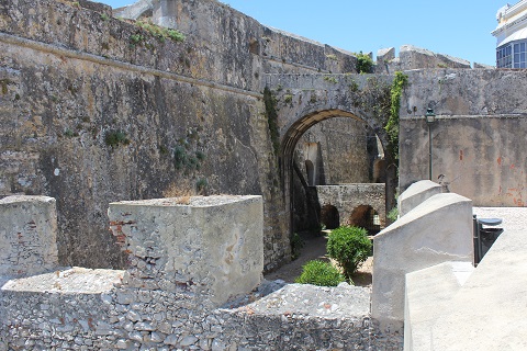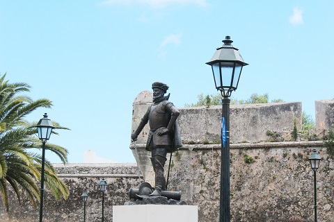 | de citadel | met het standbeeld van Dom Diogo de Meneses, gouveneur van India |
