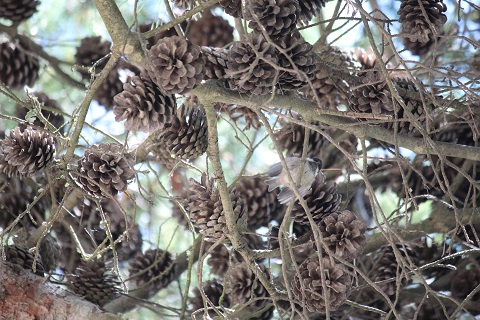 | terwijl we wachten tot we de vuurtoren kunnen beklimmen zoeken we in de tuin van de Casa Santa Maria naar Zwarte mezen | ook zien we nog een muurhagedis | |