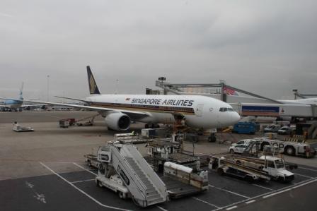 | Ons vliegtuig aan de gate | de bagage en mondvoorraad wordt ingeladen | en we laten een lege gate met slurf achter |