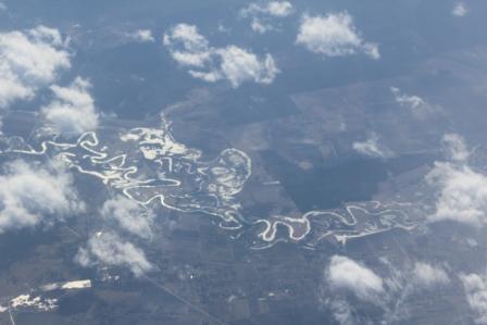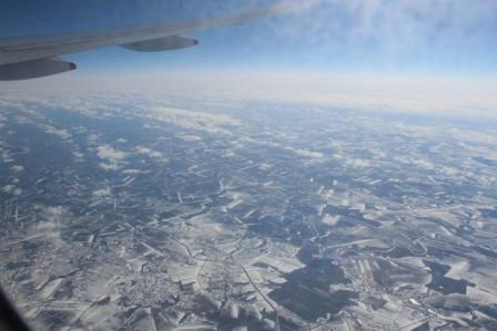 begin van de reis vlogen we door de wolken, dus weinig te zien