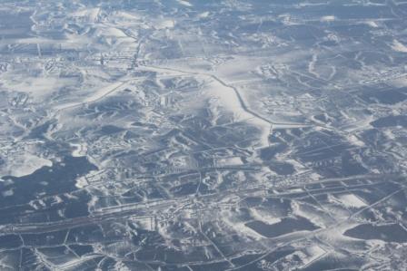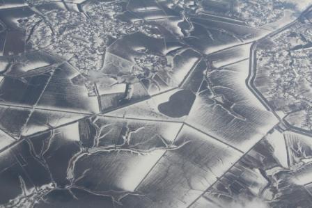 deze foto's maken tot boven Georgië, toen werd het te donker. Later zullen we met Google World proberen uit te zoeken waar we precies boven vlogen. Duidelijk is dat in Polen nog wat sneeuw lag en in Georgië nog meer, dat geeft een prachtig reliëf op de foto's |