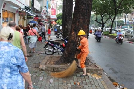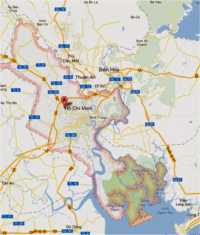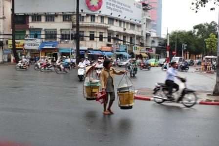 | Het straat beeld van Ho Shi Minh City was qua bebouwing afwisselend, nieuwbouw, Franse koloniale stijl en traditionele Vietnamese bouw, Er rijden meer dan een miljoen brommers en scooters in de straten en alle leidingen voor elekriciteit, telefoon, etc. hangen in de lucht. | ||