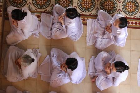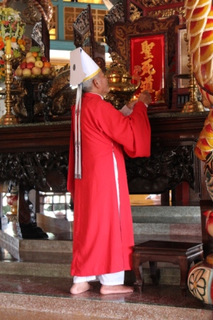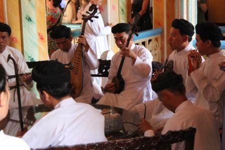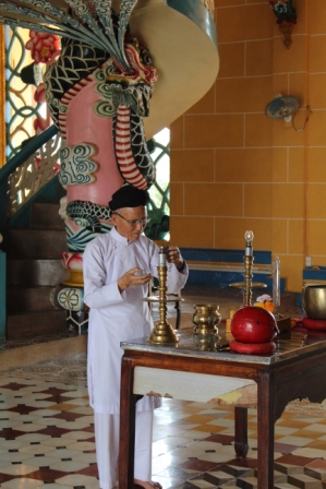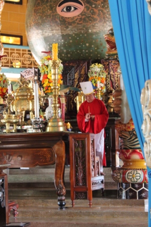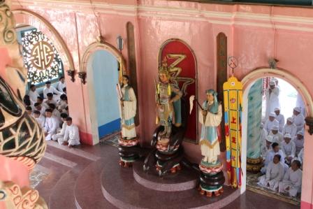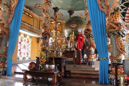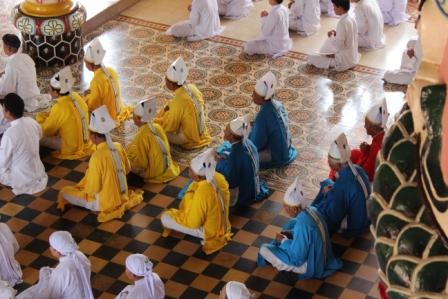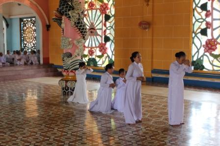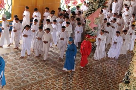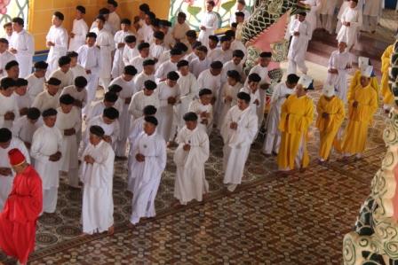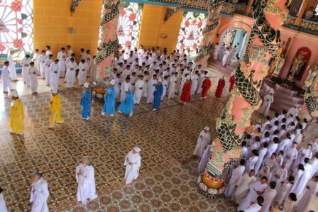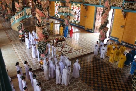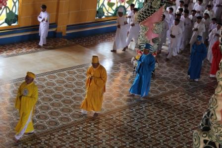 processie gaan ze naar het centrale heilige Cao Dai Altaar.