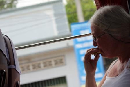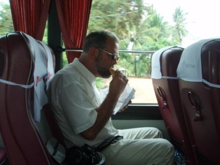 tijd te winnen lunchten we een gezond broodje in de bus |