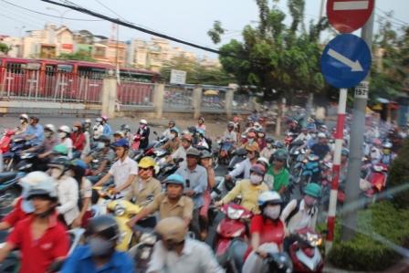 in Ho Chi Minh City zagen we deze verkeerschaos tijdens de