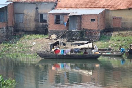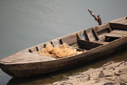| Nog een stukje drijvend vissersdorp | Een houten roeiboot met visnetten | |