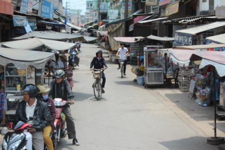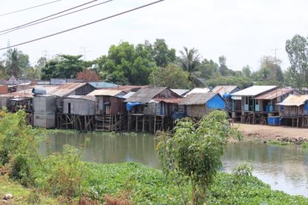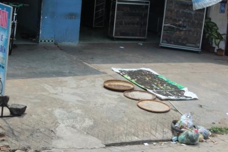 | Paalwoningen van de vissers in Dinh Quan | De thee ligt te drogen voor het huis | Typisch straatbeeld met markthandel en eettentjes |