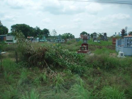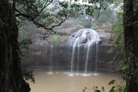 | Het weer wordt weer slechter boven Dalat | De waterval van Prenn was mooier en liet ook meer water zien | We reden nog langs een kleurig kerkhof |