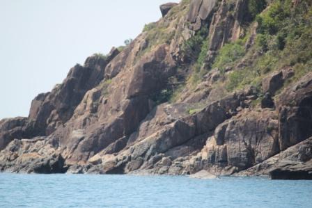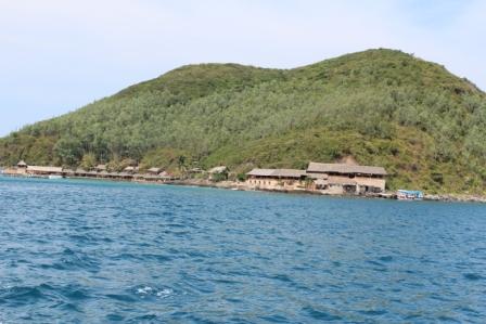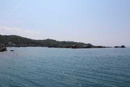 | We varen langs diverse eilandjes waarvan er één met wachthuisjes. Op dit eiland nestelen veel zwaluwen en de overheid oogst hier de nesten, die zijn kapitalen waard, vandaar de bewaking | ||