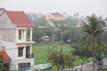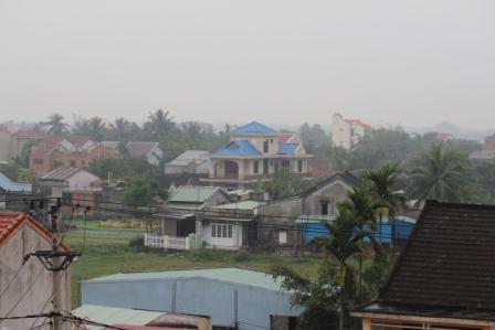 | Voor ons hotel in Hoi An | Het uitzicht vanaf ons balkonnetje | |