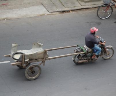| geen ruimte voor bagage, dan maar in de kruiwagen | een boompje | een ossenkar | een matras |